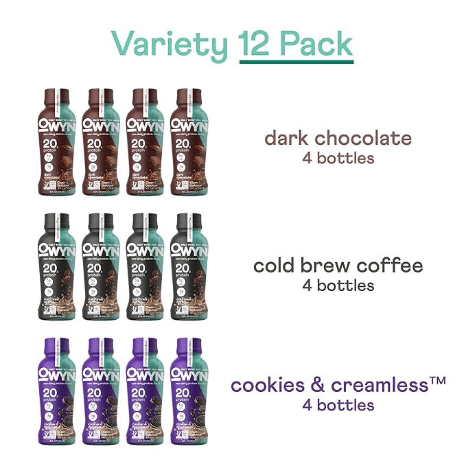OWYN Only What You Need Plant Based Protein Shake, 20g Vegan Protein from Organic Pumpkin Seed, Flax, Pea Blend, Prebiotic Supplement, Superfood Greens, Gluten & Soy-Free (Variety Pack, 12 Pack)