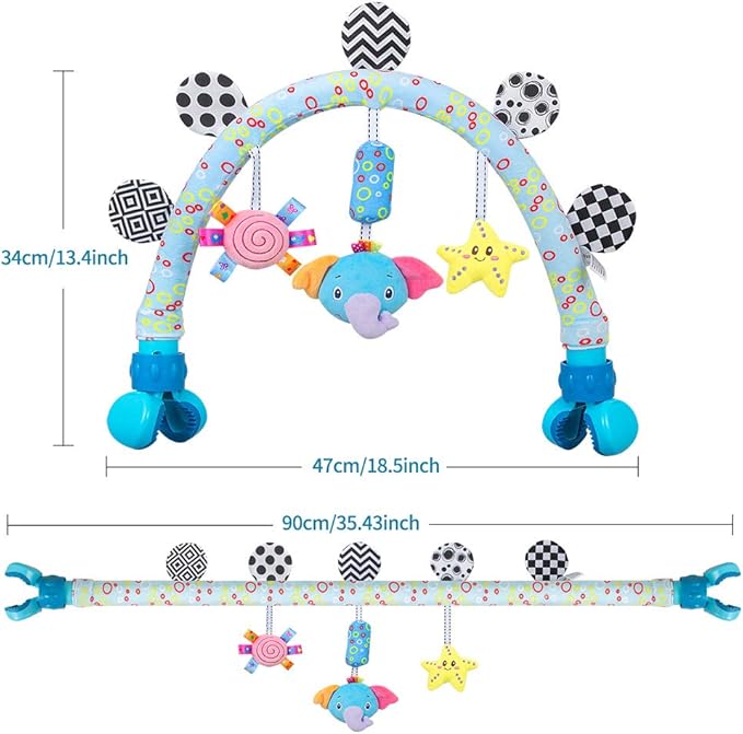 Travel Arch Bassinet Mobile Toys for Infant & Toddlers,Clip on Stroller Toy Crib Accessory & Pram Activity Bar Toy for Indoor and Outdoor (Elephant)