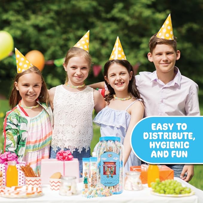 - PERFECT PARTY FAVOR: These candy necklaces are ideal for pastel party favors and Barbie birthday treats. As the candy necklaces are individually wrapped, they’re also great for Halloween treats, piñata fillers or Easter hunt treasures. Or, use our nostalgic candy jewelry to add some novelty to your pastel candy buffet.