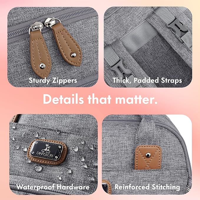- Not Just a Mommy Bag: Features gender neutral color scheme, Stylish and unisex design makes the baby bag a nice choice for both women and men. Dads are happy to be seen in public with it, while on daddy duty! This diaper nappy bag can also be used as a backpack, handbag, purse and more. It will even make a great piece of carry-on backpack beyond toddlerhood. Perfect for travel with your boys & girls! This is also an ideal newborn baby registry shower gift!