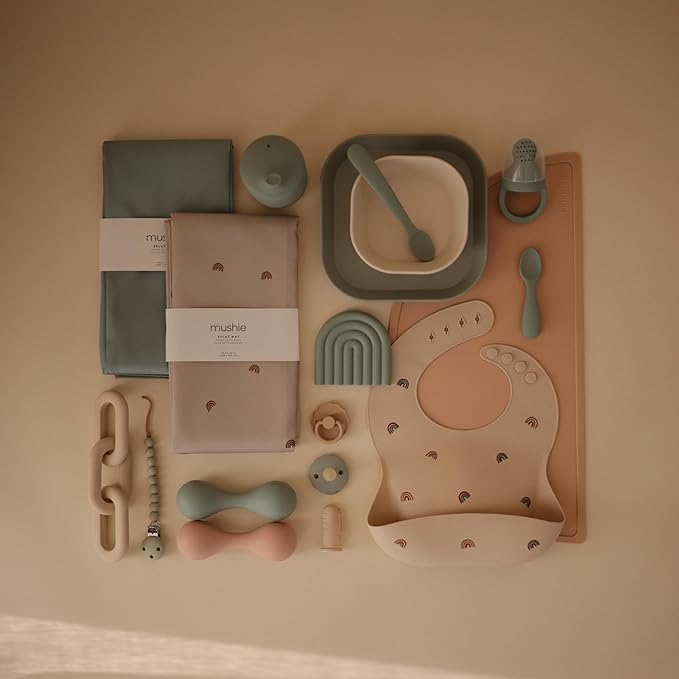 mushie Square Dinnerware Plates for Kids | Made in Denmark, Set of 2 (Sage)