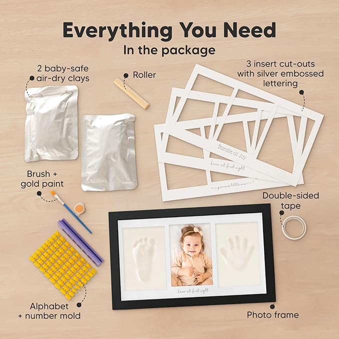 - 100% Safe Food-Grade Clay - Our baby picture frame features 100% baby-safe air-dry clay, perfect for preserving your baby prints. Our premium material ensures durability, the baby hand and footprint maker will look flawless for years to come.