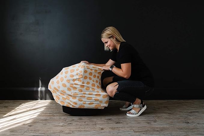 Baby Car Seat Cover Canopy and Nursing Cover Multi-Use Stretchy 5 in 1 Gift "Patch" by Copper Pearl