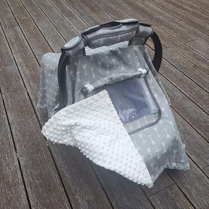 - COZY SOFT AND VERSATILITY: Our car seat cover fits breathable cotton fabric for side A, dotted fleece for side B, cozy soft for newborn’s sensitive skin. It also can double as a nursing blanket cover for breast feeding, or a travel blanket for car seat, stroller etc, even a stroller cover, covered goods privacy cover, canopy couture, nursing wraps, tummy time play mat for boys or girls, etc. Perfect multifunctional cover for mum and baby, so you can save money and add space to your diaper bag.