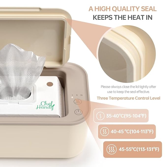 - 【Super Silence Working】 The Chefhandy Baby Wipe Warmer and Wet Wipes Dispenser operates quietly, ensuring it won't disturb your baby's sleep. The warmer's seal locks in moisture and heat, guaranteeing that the wipes stay moist.
