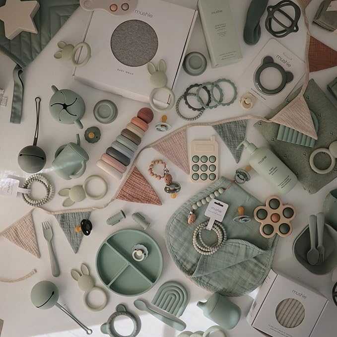 - Mushie Silicone Baby Teether Toy Bear Dried Thyme