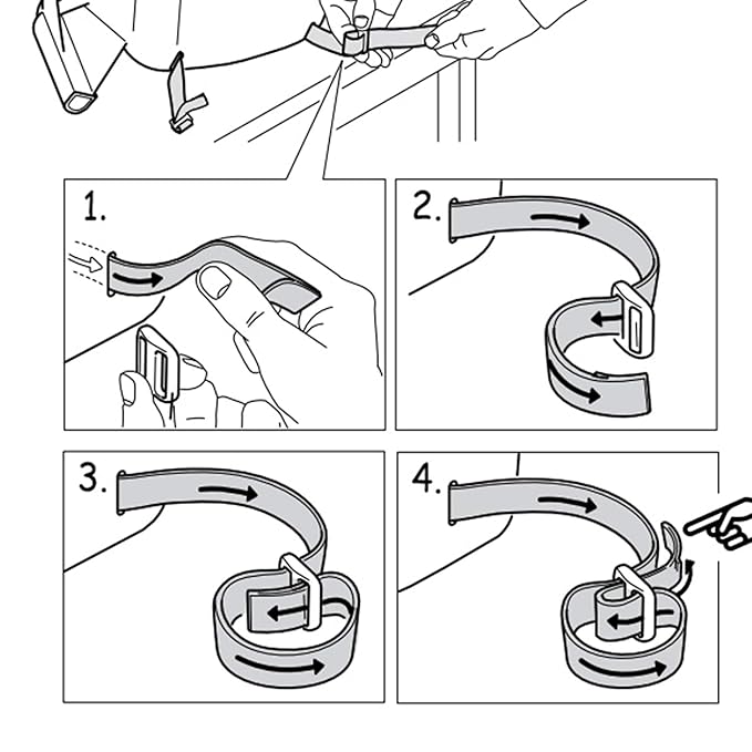 - NOTE● in order to secure straps you must Thread them through the black fasteners TWICE. Just Google the how to video for the antilop high chair.