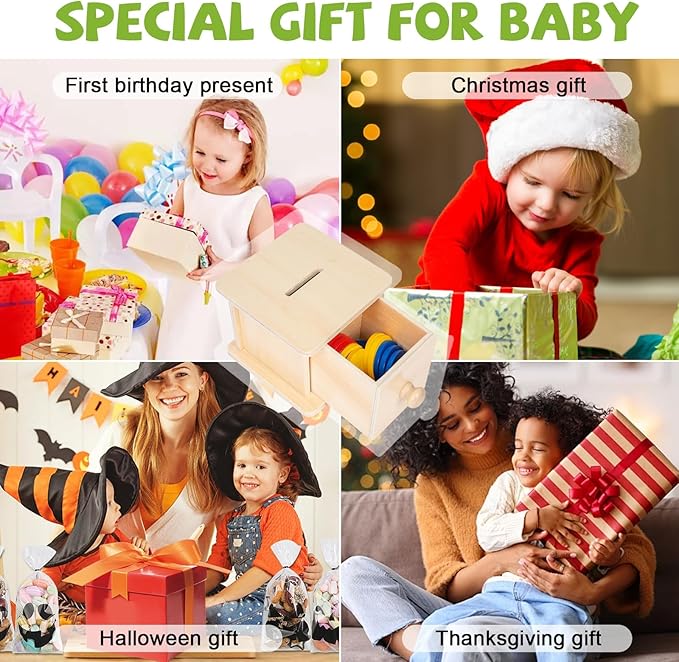 Adena Montessori Coin Box,Object Permanence Box Toys for 1 Year Old Baby Coins,Wooden Montessori Ball Drop Developmental Toys for 6-12 Month Infant,Learning Kids Gifts(Typical Drawer Comes Out)