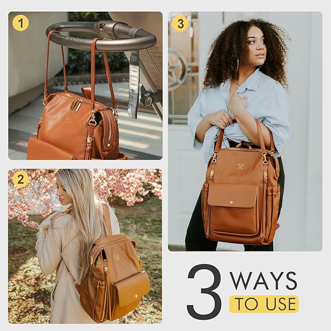 - ❤️【On-the-Go Convenience】Adjustable PU leather backpack straps, easy-grab & detachable top handle, and stroller straps in PU leather allow you to wear this diaper bag as a backpack and diaper tote bag or attach it to a stroller. It's very convenient when you travel with your baby girl and boy, making this the actual backpack diaper bag of choice.