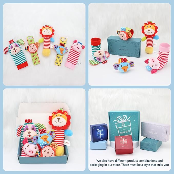 - PERFECT BABY GIFTS -- Give these Soft Baby Rattles Toys as the perfect infant toy gift.Suitable for Baby showers/Baby sprinkle/Sip & See gift/Newborn baby gift/Birthday gift/Registry gift/Easter/Halloween/Thanksgiving/Christmas/Holiday gift/Christening gift/'Just because'gift.