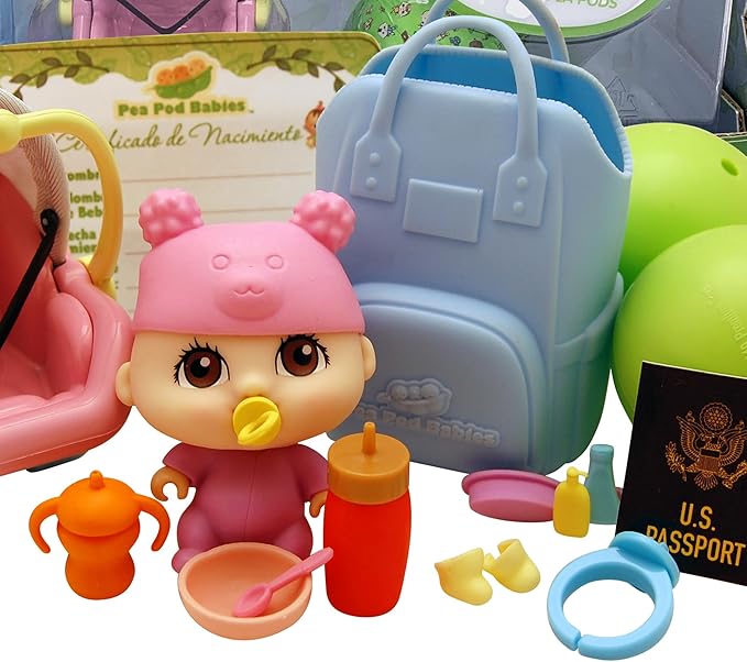 - Surprise! You'll have fun opening each pea to see the magical set of mini stuff packed inside. Then, open your collectible baby and have fun.