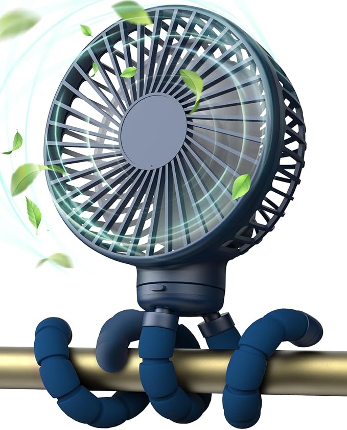 FRIZCOL Stroller Fan for Baby - Portable Fans Rechargeable - Battery Operated Fan(Use for 24Hrs) - Fan for Handheld/Clip On/Car Seat/Desk/Camping (Dark Blue)