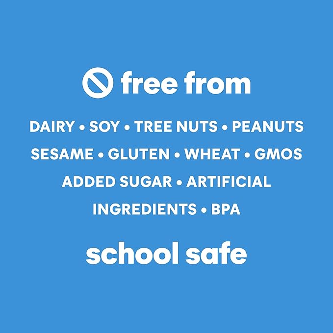- FREE OF "BIG 9" ALLERGENS: School safe snacks free from added sugar, artificial ingredients, GMOs, gluten, dairy, soy, peanuts, tree nuts, sesame, eggs, fish, shellfish and BPAs.