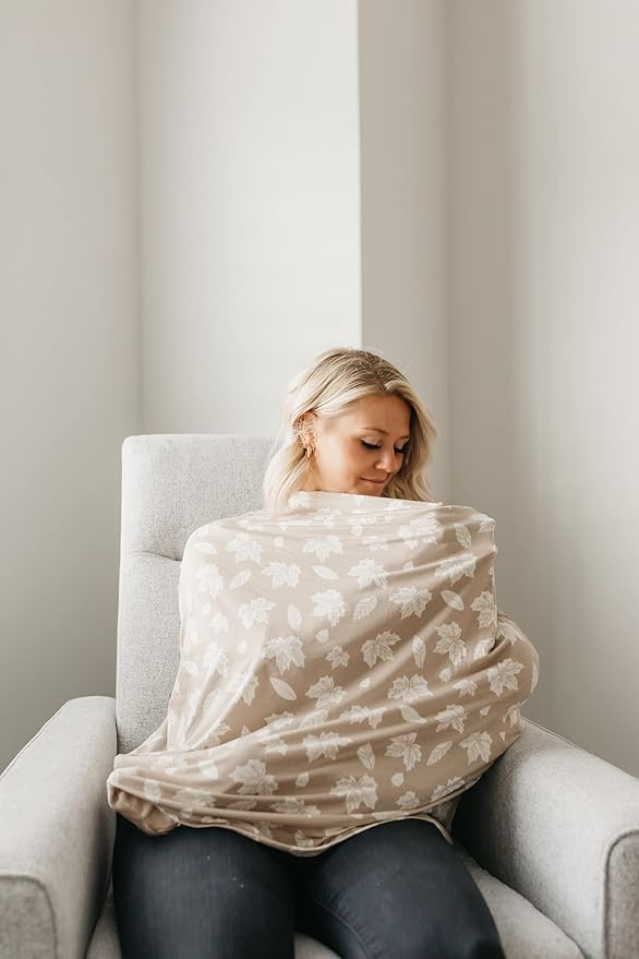 Copper Pearl Multi-Use Cover: Car Seat Covers, Nursing Cover, and Stroller Cover for Sun - Stretchy Fabric, All-Season Use, Stylish Designs, Easy Access for Moms - Oak