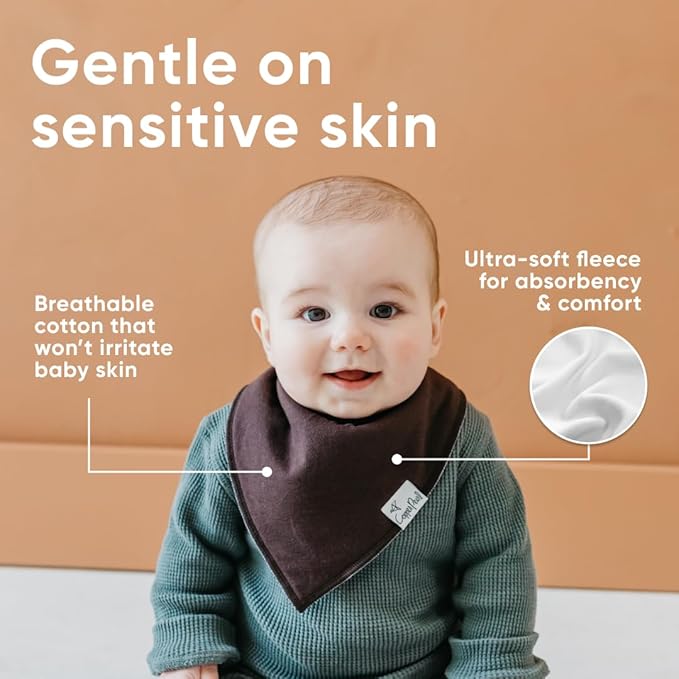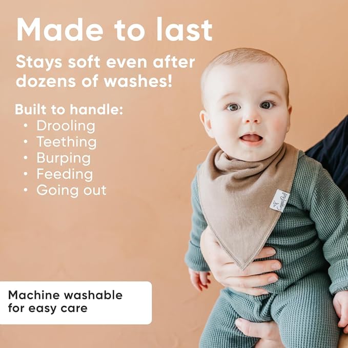 Copper Pearl 4 Pack Soft Cotton Baby Bibs for Drooling and Teething, Absorbent Drool Bibs for Baby Girl and Boy, Adjustable to Fit Newborns to Toddlers, Tons of Styles (Dune)
