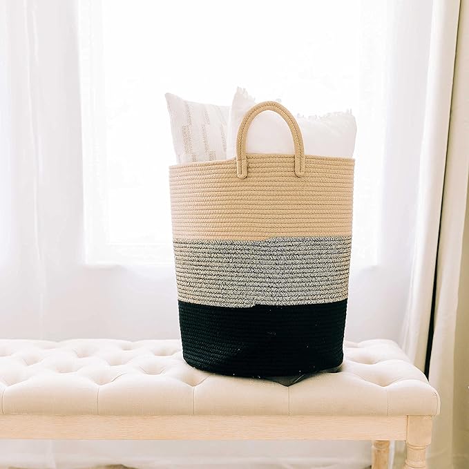 - Soft Yet Durable Cotton Rope: This premium woven laundry basket is crafted from cotton, no chemicals, no plastics. Safe for children and pets, with a soft texture that won’t scratch floors or hands.