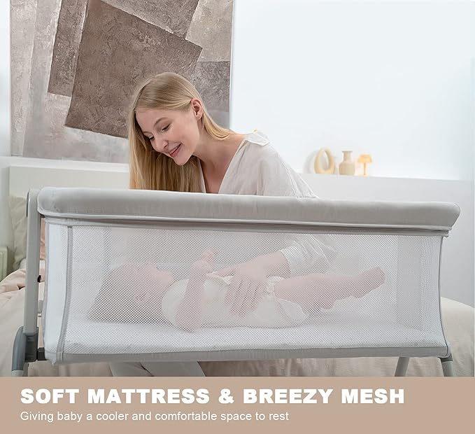 - Dual Use: Features a modern design and versatility, allows using as a standalone bassinet or a bedside sleeper. Simply use two fastening straps attached to the mom's bed without any gaps. Easy set-up and take-down within seconds, tool-free assembly.