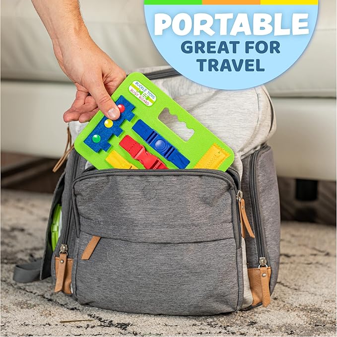 Buckle Toys Mini Busy Board for 1 Year Old Toddlers Travel Essentials for Kids, Montessori Toys for 1 Year Old Baby to Develop Fine Motor Skills, Great for Road Trip Activities for Kids Sensory Toy