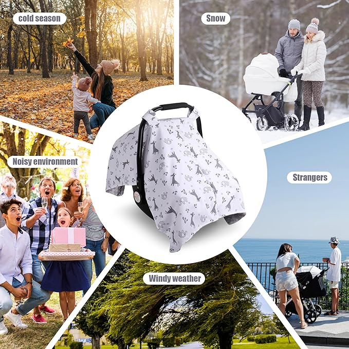 Metplus 2 in 1 Baby Car Seat Cover, Car Seat Canopy for Babies, Mom Nursing Cover, Minky Baby Carrier Covers, Newborn Boy Girl Shower Gift, Elephant Giraffe