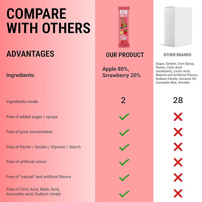 - SWEET 30 SNACKS: if you are struggling to lose weight and keep to healthy diet vegan added sugar free snacks will help with your goals; Bob Snail fruit jerky protects your energy and body, sets the right attitude and mood; Now it's time to look and eat differently