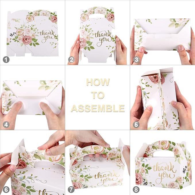 - 【Favor Boxes Bulk】 24 PACK 6.3 x 3.54 x 3.54" thank you gift boxes with pastel and romantic designs, sufficient to meet your needs for party favors. Extra boxes can used as lunch boxes or kiddie meal boxes. The gable boxes are pre-folded for easy assemble.