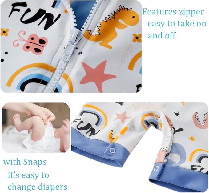 - BOTTOM BUTTON: The baby boy's one-piece rash guard with snap button at the bottom, parents love the snap leg opening for convenient diaper changing