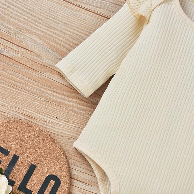 - FASHION: Stylish long sleeve solid color ribbed bodysuit + pants. Classic baby girls outfit 3 pcs. The casual set use soft and lightly textured fabric for baby. Good choice for play wear and home wear.