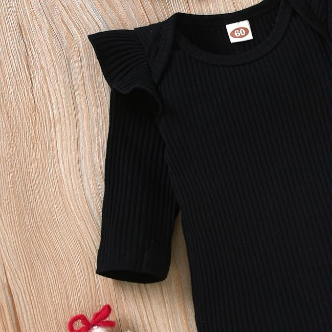 - FASHION: Stylish long sleeve solid color ribbed bodysuit + plaid pants. Classic baby girls outfit 3 pcs. The casual set use soft and lightly textured fabric for baby. Good choice for play wear and home wear.