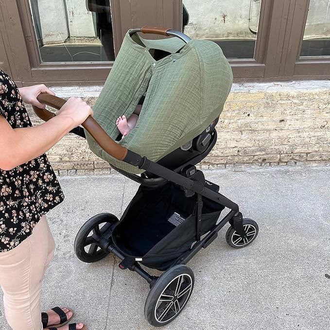 - PREMIUM COTTON FABRIC The car seat canopy is crafted from 100% cotton muslin for a soft, breathable cover that gives privacy and protects from the elements.