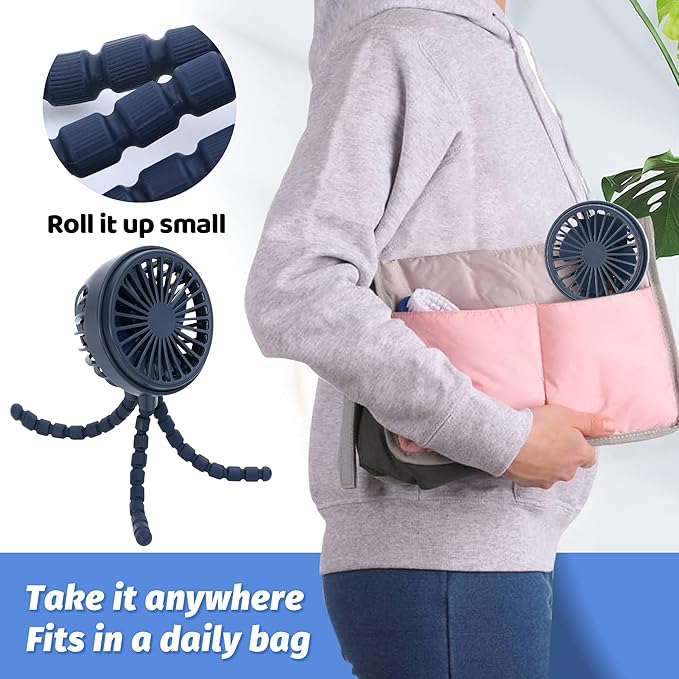LAT Stroller Fan Flexible Tripod Clip On Fan,Portable Fan Car Seat Baby Fan with Flexible Tripod (Navy Blue)