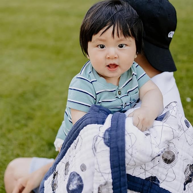 Little Unicorn Newborn Receiving Quilt | Ultra- Soft, Multi-Layered Muslin Fabric | Gift for Newborns & on-The-go (Planetary)