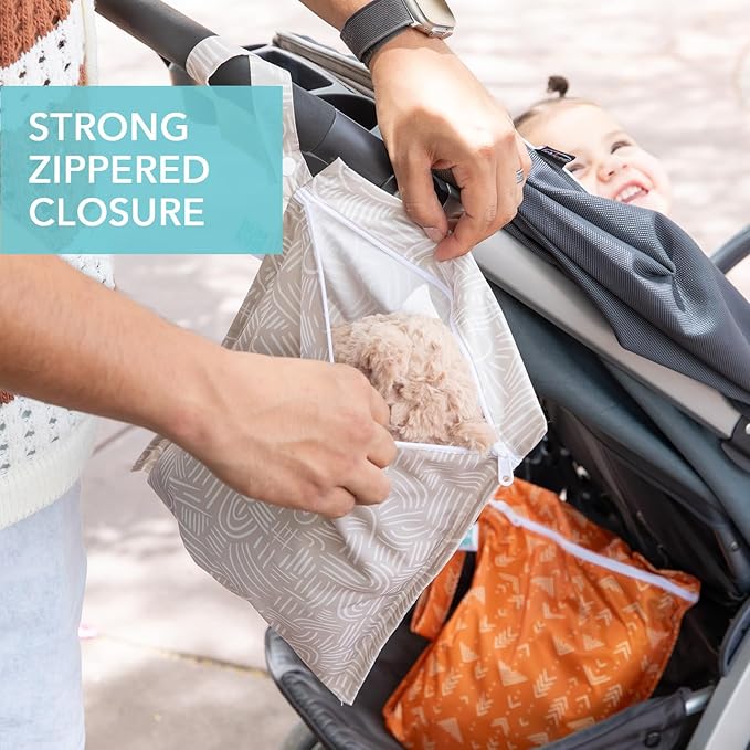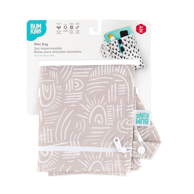 Bumkins Waterproof Wet Bag for Baby, Travel, Swim Suit, Cloth Diapers, Pump Parts, Pool, Beach, Gym Clothes, Toiletry, Hook to Stroller, Daycare, Zipper Reusable Wetdry Packing Pouch, Boho Beige