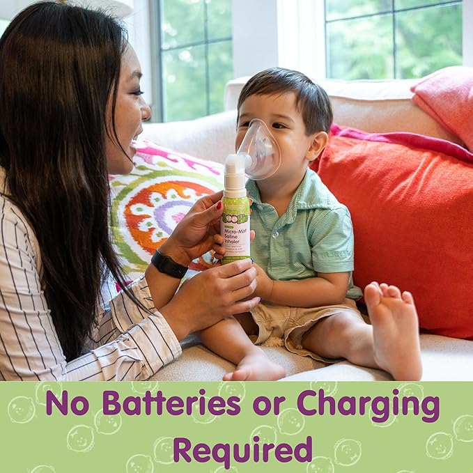 - EASY-TO-USE: The Boogie Micro-Mist Saline Inhaler is portable, ready-to-use and can be used with or without the face mask. It does not require batteries or charging. After use, the mask and nozzle can be easily cleaned and reused (both are dishwasher safe).
