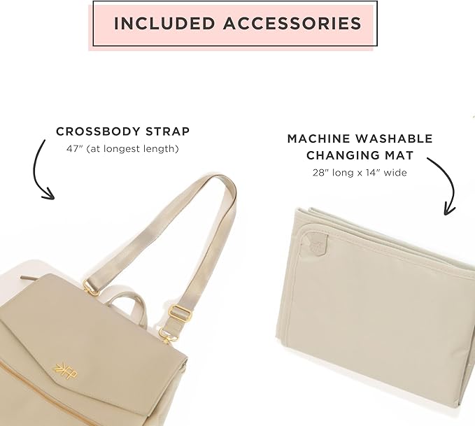 - Wear 3 Ways: Diaper backpack features padded adjustable straps for comfortable wear. Adjustable shoulder strap included for use as a crossbody or tote. Also has a "grab-and-go" top carrying handle and four metal feet to keep the bag off the ground.