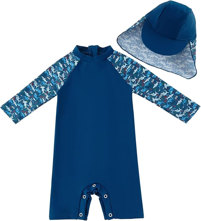 • BOTTOM BUTTON: The baby boy's one-piece rash guard with snap button at the bottom, parents love the snap leg opening for convenient diaper changing