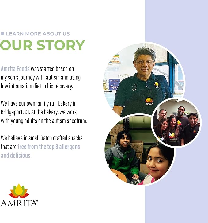- Amrita Promise - We assure a friendly plant based, vegan snack manufactured on dedicated equipment free of top allergens and operated by our specially trained staff.
