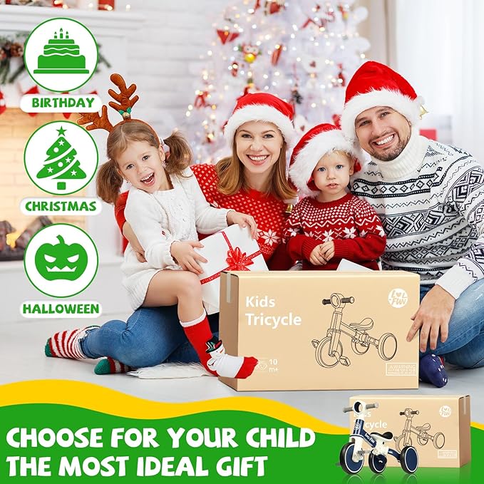 - SAFE FOR BABY 10M+: LOL-FUN have always considered the importance of safety for toddlers. And this 1 year old baby tricycle is made of high-quality material. BPA free. Beautiful bright nontoxic paint. The handle and pedals are non-slip. The head is well-polished and 100°angle limited. Safe design can be assured as gift for 1 2 year old boys girls