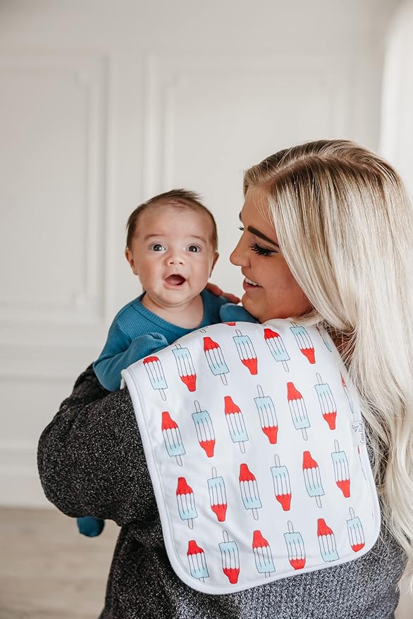 - SOFT AND COZY: Our burp cloths are designed with the baby’s comfort in mind. That’s why we created them with 100% ultra-soft cotton layers on the front (patterned) and back (plain white). You can feel confident that baby will feel cozy against your shoulder while burping.