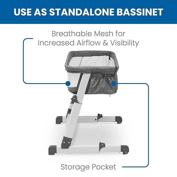 - ADJUSTABLE HEIGHT: 6 adjustable height positions allow the bassinet to accommodate most beds 19-inches to 25-inches high | Ideal for newborns and breastfeeding moms, this will help new parents get back to sleep quickly after feeding or comforting baby