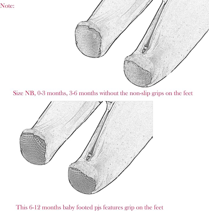 - 【Built-in Mittens and Footed】All sizes design with reversible mitten hand covers to prevent baby from scratching themselves. This 9-12 months baby footie pjs features grip on the feet for extra stability. Great for little baby on the move(size 0-9 months and snap style all size without non-slip grips)