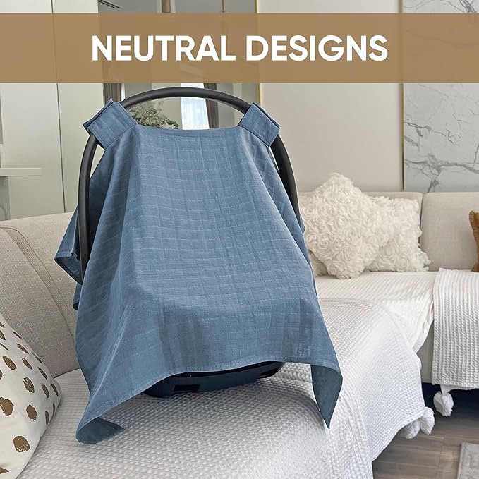 - GENDER-NEUTRAL DESIGN: Featuring a modern Blue Mirage color, this unisex muslin car seat cover suits both baby boys and girls. A perfect choice for gender reveal parties, baby showers, or as a thoughtful newborn gift, stylish, practical, and universally loved.