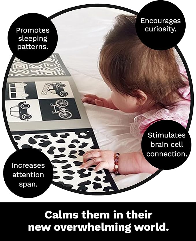 - Stimulate Visual Development: Our high-contrast 20 x 100cm fold-out supersized black and white card for newborns is designed to captivate developing eyesight. This baby sensory board features 8 geometric patterns that keep your little one entertained and curious as you take a breather.