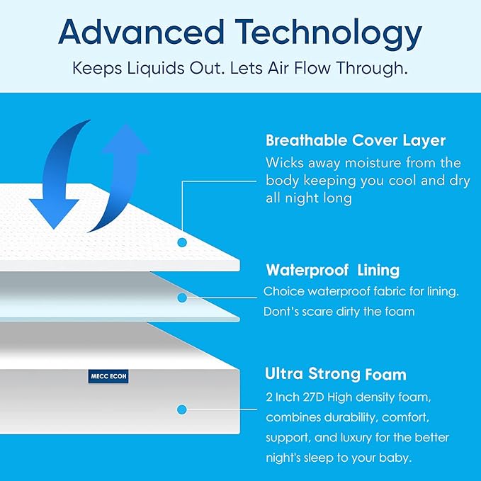 - Premium Support with 2" Thick High-Density Foam: Designed with a 2-inch thick high-density foam core, offering superior support compared to thinner alternatives. Helps promote healthy spinal development for your baby.