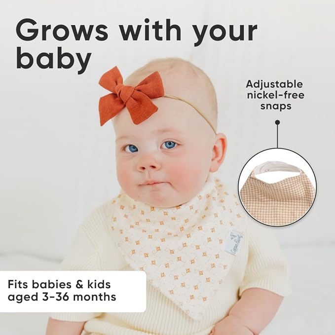 - GROWS WITH YOUR BABY: Each bib features two adjustable nickel-free snaps, allowing for a perfect fit from newborn through toddlerhood (3–36 months).