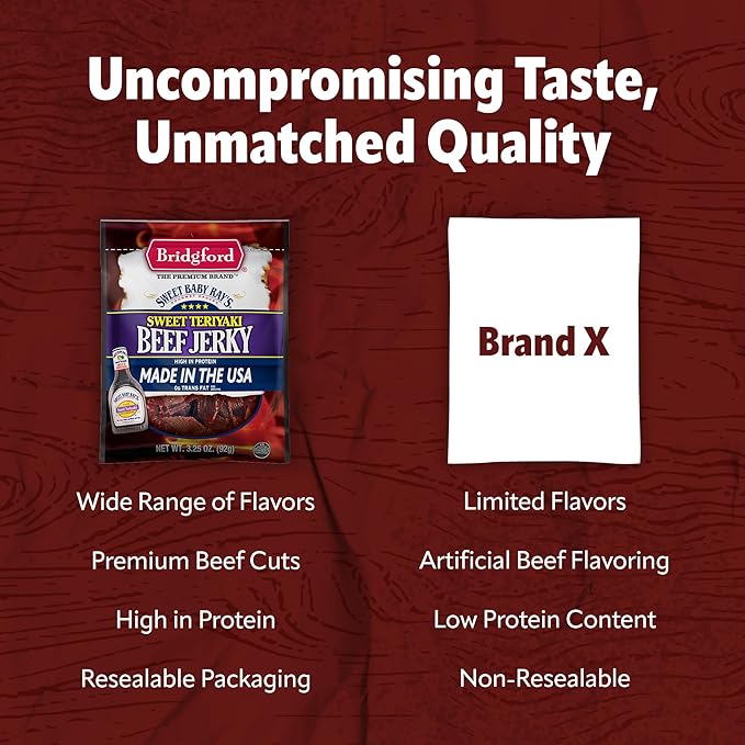 - Authentic Flavor: Our teriyaki beef jerky offers the unique taste of Sweet Baby Ray's, a brand known for its delicious sauces and seasonings. Satisfy your cravings with our beef jerky snack packs and barbecue sauces for an unmatched taste experience.