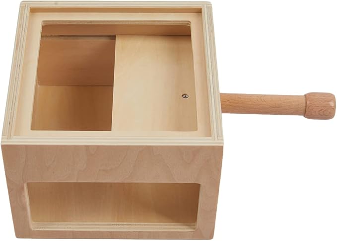 - When the count is complete the child pulls the knob on the side of the box and the pegs come tumbling down. With this reward the child will repeat the activity with a given number over and over again, eventually practicing each number and becoming aware of the concrete quantity associated with the numerical symbol.