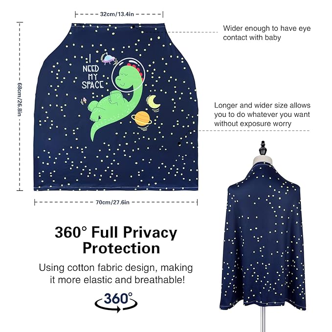 - Mom Privacy Nursing Cover: The car seat cover also doubles as a nursing cover, offering full privacy protection to breastfeeding moms. The fabric is so stretchy that you can have plenty of room inside. A stretchy opening at the top lets less light and more air in and allows you to peek at the little baby easily.