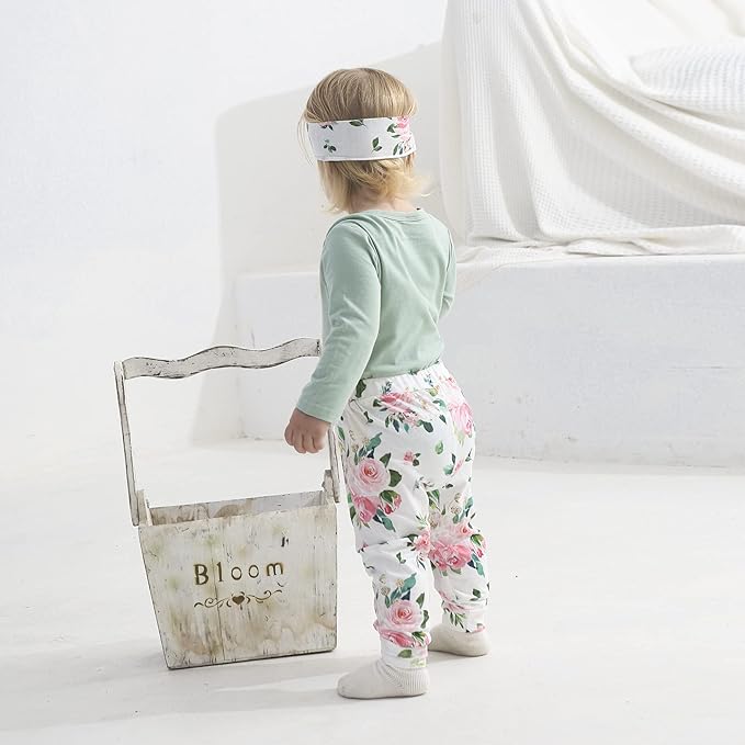 - Unique Designs---Snap up opening for easier diaper changes, delicate and stylish flower pattern and "I'M MY Daddy's GIRL AND MY Mommy's WORLD" words designs, this baby girl pants set will bring your little baby happiness and she will get lots of compliments and won’t want to take it off.