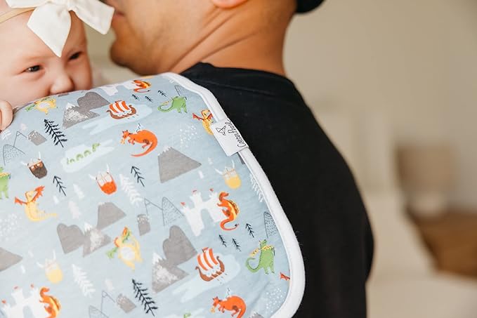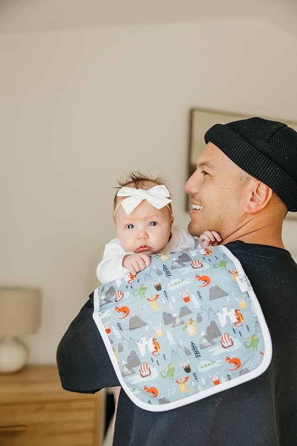 - EXTRA LARGE SIZE: Our thick burp cloths come in a generous 21x10 inch size, providing greater shoulder coverage (and less outfit changes) for Mom and Dad. These are newborn essentials - ensuring maximum absorption and comfort for both baby and parent.