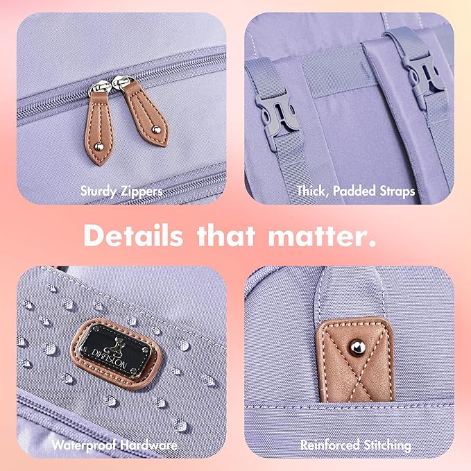 - Durability to last: Our maternity backpack diaper bag is crafted from lightweight and waterproof polyester fabric. Includes spill-resistant and easy-to-clean lining. You don't need to fear spilled milk or water. Non-fraying stitching, easy-tote top handle, back ergonomic design and thick padded cushioned shoulder straps will release stress and bring comfort while carrying.